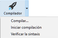 Esta opción es la única disponible si no tiene la licencia adecuada que permita la compilación de aplicaciones. La verificación de la sintaxis también puede lanzarse directamente utilizando el comando Verificar la sintaxis asociado al botón “Compilador”.