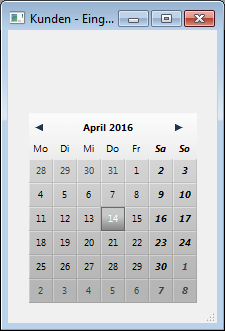 Im Formular sieht der Kalender so aus: