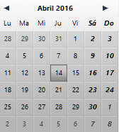 Añade un calendario asociado a una expresión asignable, tal  como una variable date o una propiedad (Form.myDate). El calendario se puede configurar con el fin de especificar los días festivos, un rango de fechas, etc.