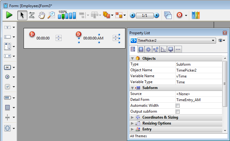 Aquí están las áreas de entrada hora disponibles en un formulario: