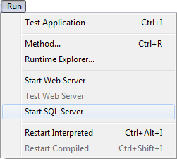 Automaticamente ao inicio da aplicação, via as Propriedades da base. Para fazer isso, mostre a página SQL e selecione a opção Lançar o servidor SQL ao início: