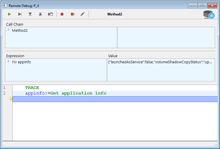Quando um banco de dados 4D estiver rodando em um servidor 4D, você pode depurar o código 4D rodando no servidor a partir de uma aplicação 4D Remote Developer. Basta anexar o depurador a uma máquina remota específica, e a execução do código pode ser monitorada no depurador diretamente na máquina remota.