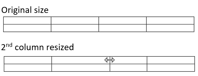 Um eine Spalte anzupassen, klicken Sie auf den Spaltentrenner und ziehen ihn nach rechts oder links. Die Mindestbreite einer Spalte ist 8 pt. Erreicht die rechts anschließende Spalte die Mindestbreite, werden alle rechts davon liegenden Spalten angepasst. Erreicht die erste Spalte oder eine links anschließende Spalte die Mindestgröße, ist in dieser Richtung keine weitere Anpassung möglich.