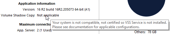 Outras versões Windows compatíveis com VSS podem ser compatíveis mas não estão certificadas; nestas versões, o serviço VSS deve ser ativado no setup: