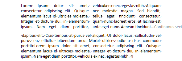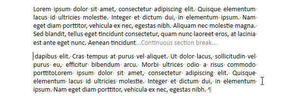 Desea insertar un salto de sección continuo para tener una sección de una columna y una sección de dos columnas en la misma página.