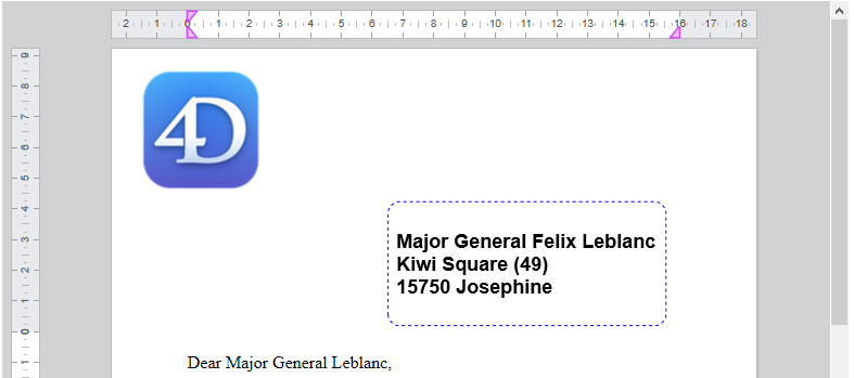 En una plantilla de una carta, desea añadir una caja de texto para mostrar la dirección del destinatario (que se almacena en el contexto):