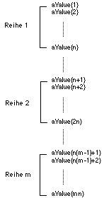 Nachfolgendes Schema zeigt, in welcher Reihenfolge ArrayWerte gefüllt werden soll. Dabei ist n die Gesamtzahl der Kategorien, m die Gesamtzahl der Reihen.