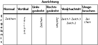 Erhält Ausrichtung der Bezeichnung: 0 = Normal, 1 = Vertikal, 2 = Rechts gedreht, 3 = Links gedreht, 4 = Verschachtelt, 5 = Umgebrochen |