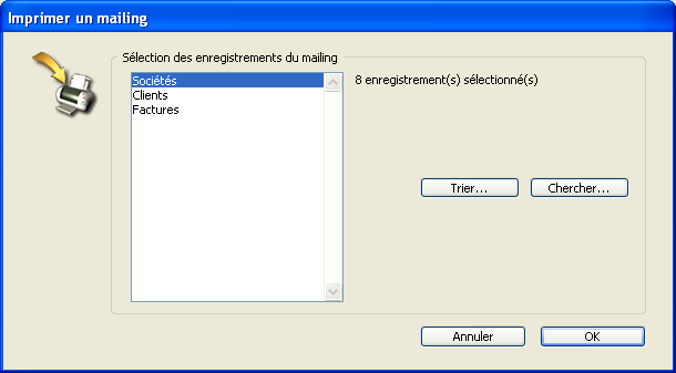Si numTable est égal à 0, la boîte de dialogue Sélection des enregistrements du mailing s’affiche :