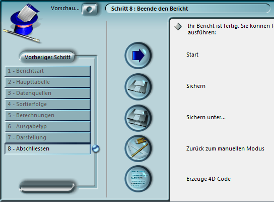 Die Schaltfläche zum Generieren von Code erscheint auf der letzten Seite des Schnellberichteditors: