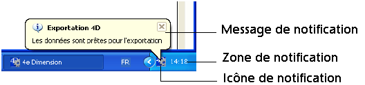 La commande AFFICHER NOTIFICATION provoque l’affichage d’un message dans la zone de notification de la barre des tâches de Windows :
