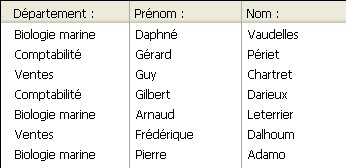 Les tables [Départements] et [Employés] contiennent les enregistrements suivants :