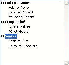 Note : Cet exemple est utile dans le cadre de la gestion de l'interface utilisateur, si vous manipulez un nombre limité d'enregistrements. Souvenez-vous que les listes sont conservées en mémoire ; donc, ne construisez pas d'interfaces utilisateur exploitant des listes hiérarchiques comportant des millions d'éléments.