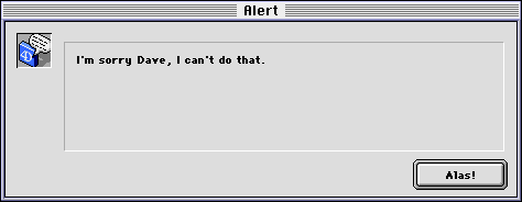 ALERT("I'm sorry Dave, I can't do that.";"Alas!")zeigt folgende Meldung auf dem Bildschirm: