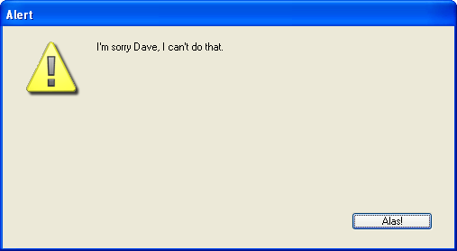 ALERT("I'm sorry Dave, I can't do that.";"Alas!")以下のようなアラートダイアログボックスを表示します:
