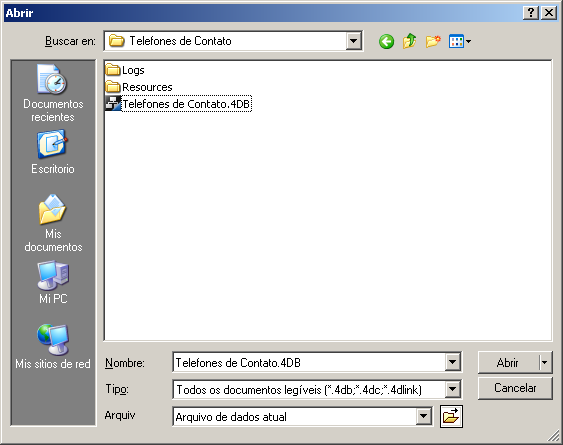 • Em Windows, você deve selecionar o arquivo de estrutura do banco (extensão .4DB ou .4DC).