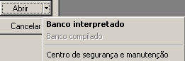 • Abrir: o menu associado a este botão permite definir o modo de abertura do banco. Inclui as opções Banco interpretado e/ou Banco compilado, assim como o Centro de Segurança e Manutenção: