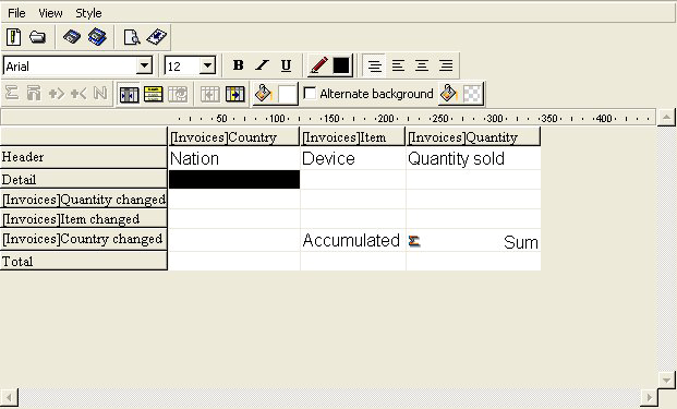 In some cases, you may want to repeat the values for the Break columns so that they appear for every record in the Break area. You do so by selecting the Repeated Values column property. This can be done either by clicking the Repeated Values button in the toolbars, by choosing the Repeated Values menu command in the Quick Reports context menu for that column, or by selecting Repeated Values from the Columns menu.