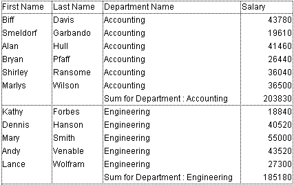 In other words, a department name is printed only for the first record in the group and is not repeated until the department changes.