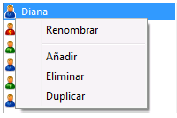 Haga clic derecho en la lista de usuarios y elija el comando Añadir o Duplicar en el menú contextual.