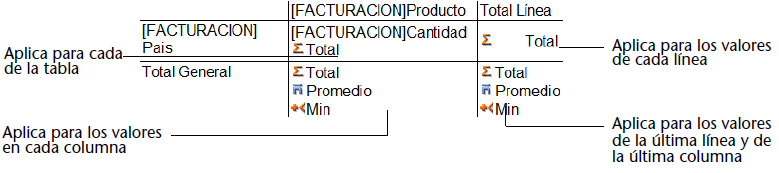 - Promedio: calcula el promedio de los valores del informe o de la ruptura.
