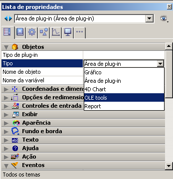 Para designar o plug-in a ser utilizado na área, selecione seu nome diretamente na lista Tipo (tema “objetos”):