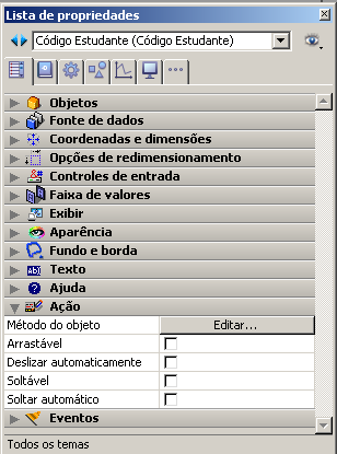 O arrastar e soltar automático pode ser configurado separadamente para cada objeto de um formulário através de de duas opções da Lista de propriedades: Arrastar automático e Soltar automático.