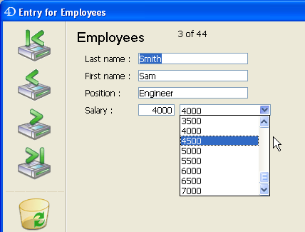 :(Form event=On Clicked) [Employees]Salary:=arSalaries{arSalaries} End case