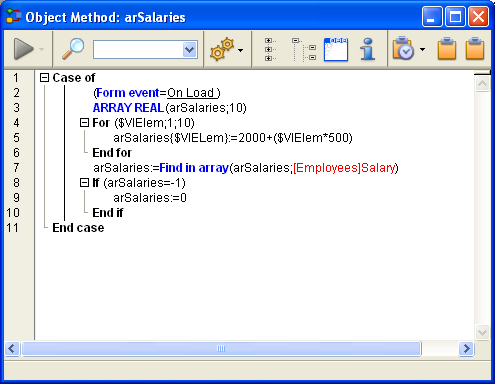 arSalaries:=Find in array(arSalaries;[Employees]Salary)
