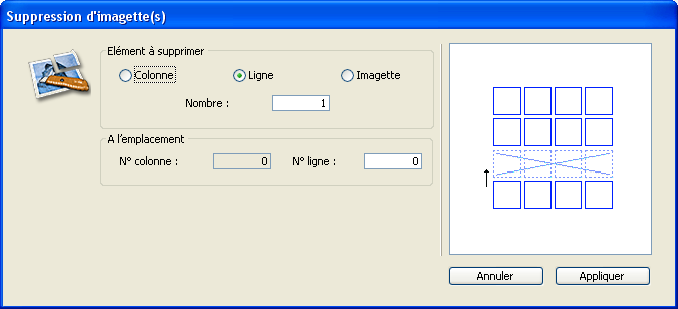 3. Définissez le type d’élément que vous souhaitez supprimer (colonne, ligne ou imagette individuelle) et indiquez le nombre d’éléments.