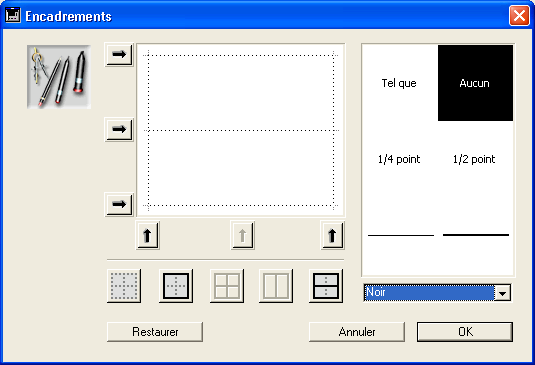 Répétez les étapes 2 et 3 pour chaque bordure à paramétrer puis validez la boîte de dialogue. Le bouton Restaurer rétablit les bordures initiales.