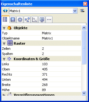 1. Wählen Sie in der Objektleiste das Tool Matrix (Variante der Gruppe Viereck) und erstellen ein Raster im Formular.