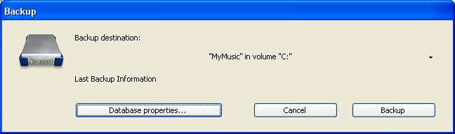 Select the Backup... command in the 4D File menu. The backup window appears: You can see the location of the backup folder using the pop-up menu next to the "Backup destination" area. This location is set on the Backup/Configuration page of the Database Settings. OR Select Maintenance Security Center in the Help menu of 4D and display the Backup page. For more information about the MSC, refer to the Maintenance and security center chapter. The Database properties button causes the Backup/Configuration page of the Database Settings to be displayed.