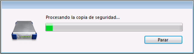 El botón Parar le permite al usuario interrumpir el backup en cualquier momento (consulte En caso de problemas durante el backup).