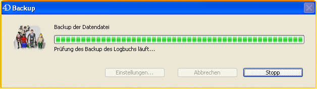 Sobald das Backup gestartet ist, zeigt 4D das Fortschreiten der Operation in einem Dialogfenster an: