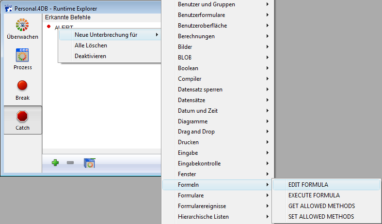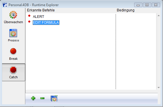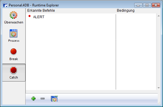 Mit der Seite Catch (Erkannte Befehle) des Runtime Explorers können Sie für Ihren Code zusätzliche Unterbrechungen setzen durch Unterbrechen der aufgerufenen 4D Befehle.