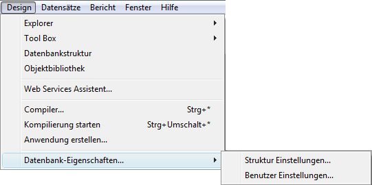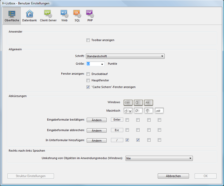 | Seite der Datenbank-Eigenschaften | Seite der Benutzer-Einstellungen |