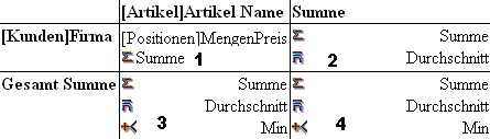4D setzt das/die markierten Icons in die gewählte Zelle. Nachfolgender Bericht enthält ein Icon in der Zeile Gesamtsumme: