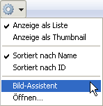 Sie können diesen Dialog auch jederzeit aufrufen, wenn Sie ein Bild auswählen und im DropDown-Menü unter der Bilderliste auf den Eintrag Bild-Assistent klicken.