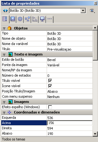 Nota: pode associar uma imagem a un botão por arrastar e soltar uma imagem da biblioteca de imagens ou de um arquivo de disco.