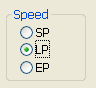 El siguiente ejemplo representa un grupo de botones radio 3D utilizado en una base de datos de una colección de videos para introducir la velocidad de grabación. (SP, LP, o EP).