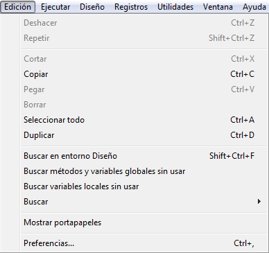 Estos comandos se encuentran en el menú Edición del modo Diseño: