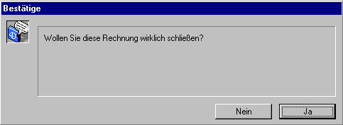 CONFIRM("Wollen Sie diese Rechnung wirklich schließen?";"Ja";"Nein")zeigt folgende Meldung auf dem Bildschirm (unter Windows):