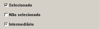Esta propiedade está disponível somente para caixas de seleção padrão associadas a variáveis numéricas, as caixas de seleção 3D e as caixas de seleção para campos booleanos não podem utilizar a propriedade Três estados (um campo booleano não puede estar em um estado intermediário).