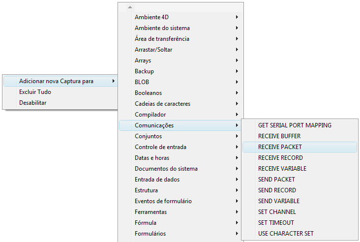 Nota: Para apagar todos os comandos capturados, clique no botão Excluir Todos (terceiro botão localizado abaixo da lista) ou escolha Excluir todos no menu de contexto.