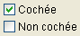 Note : Les cases à cocher 3D ont un fonctionnement identique aux cases à cocher mais leur apparence (par exemple la représentation de l’état coché/non coché) est définie par les propriétés de la famille des boutons 3D. Pour plus d’informations, reportez-vous au paragraphe Boutons 3D, Cases à cocher 3D et Boutons radio 3D.