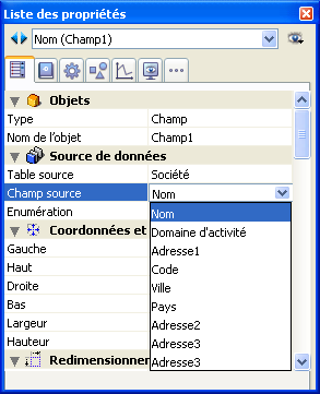 Sélectionnez le champ qui vous intéresse dans la liste des tables sources et/ou des champs sources : Note : Vous ne pouvez pas sélectionner de champ de type BLOB.