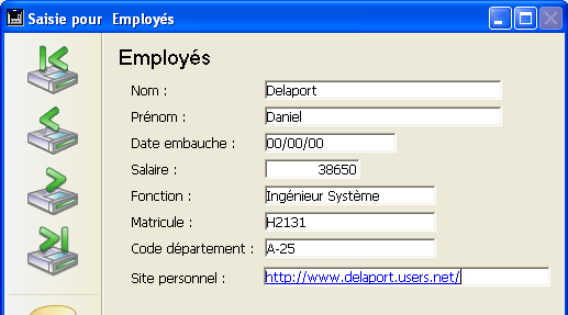 Lorsqu’un champ ou une variable de type Texte ou Alpha contient un URL (chaîne débutant par http, ftp, www ou mailto), celui-ci est automatiquement détecté. Si l’utilisateur effectue Ctrl+clic (Windows) ou Commande+clic (Mac OS) dans la zone, l’URL est alors directement exécuté dans le navigateur Web par défaut. Sous Windows, les URLs détectés sont affichés en bleu et souligné : Note : Les adresses de messagerie doivent être écrites sous la forme mailto:adresse