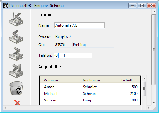 Hinweis: Im Struktureditor können Sie die maximale Anzahl zugelassener Zeichen in einem alphanumerischen Datenfeld festlegen (siehe 4D Datenfeldtypen).