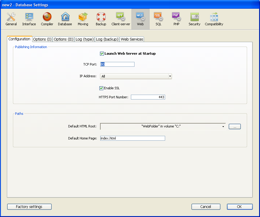 Também é possível definir dinamicamente a pasta raiz HTML utilizando o comando WEB SET ROOT FOLDER. Neste caso, a modificação aplica a todos os processos web atuais para a sessão de trabalho. A cachê das páginas HTML é apagada.